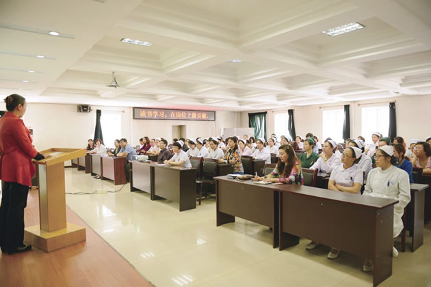 5月26日下午1时30分,院工会在学术报告厅举办了读好书,做与文化相适应的职工系列读书讲座之二:“读书学习,在岗位上做贡献”。在医院职工队伍中,有一大批科主任、护士长在紧张的工作之余坚持学习读书,丰富自己的知识。此次讲座邀请三位代表与大家分享读书学习的心得,首先由麻醉科主任王守田着重从中国居民营养与慢性病状况角度讲解如何预防高血压,并普及高血压的相关知识。王主任在工作中通过不断地学习钻研,先后在辽北率先开展腰麻技术、中心静脉置管技术,2010年编写了《医院麻醉工作手册》,2012年创建了麻醉网,使网站成为麻醉医生的技术高地和精神家园。
