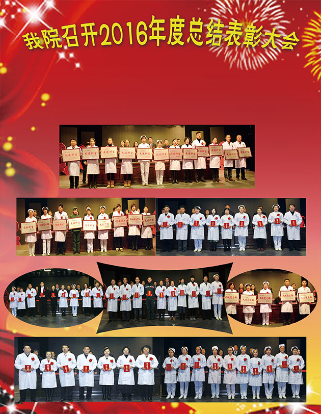 1月20日上午9时,我院2016年度总结表彰大会在广电大厦举行,医院党政领导班子、中层干部及部分职工参加了会议。大会由党委副书记党占涛主持。党委书记、院长贺佳辉做了2016年度工作总结报告,对过去一年的工作进行整体回顾,对新的一年进行展望,并部署了2017年工作要点。副院长马明、杨淑贤、王长军,工会主席丁力分别宣读了表奖决定,对2016年度做出贡献的先进集体和先进个人进行了表彰。