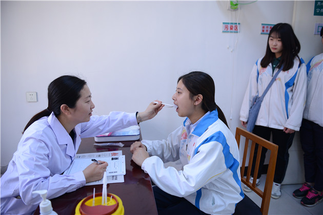 为方便考生体检,医院设置了老城及新城院区两处体检场地,医院还实施上门服务,每天清早调派多名医护人员到学校为考生采集血标本。为确保高考体检工作的严肃性和正确性,现场实行封闭管理,所有参加体检工作人员统一佩戴体检工作证,大家本着“为考生服务,对考生负责”的原则,全力做好本职工作。作为工作量较大的检查项目,检验科、护理部专门安排专业技术精湛的骨干分子参与体检,切实保障检验质量,做到了零差错;作为考生和家长最关注的体检项目,眼科体检医护人员按照要求积极履行职责,及时告知考生有关事项,既做到公平公正又给予考生人文关怀。