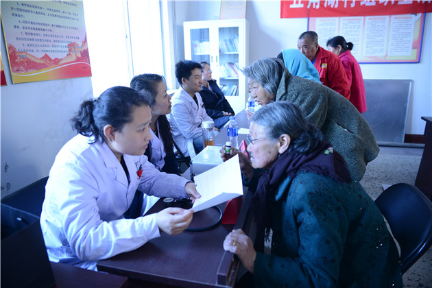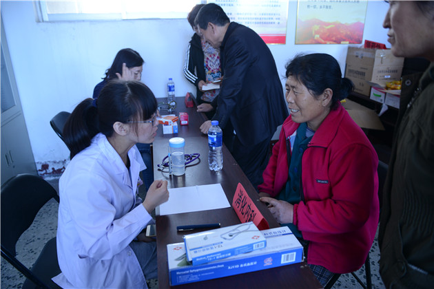 来自消化内科、心内科、普外科、口腔科、眼科、儿科等科室的16名医护人员携带检眼镜、心电图机、血压仪、血糖检测仪等检查设备,热情地为村民们进行诊治。由于正值农忙季节,很多村民,特别是老年人不能及时去医院做检查和治疗,志愿者们通过此次义诊为他们提供了相应的诊疗建议和健康咨询,并免费发放价值2000余元的药品。考虑到村民空腹检查,志愿者们还为村民准备了牛奶、面包、香肠等早餐。在义诊的同时,服务队走访了村里的贫困户,为他们送去了大米和豆油,并对患病的村民给予了健康指导,让贫困户感受到了志愿者们的关爱和温暖。