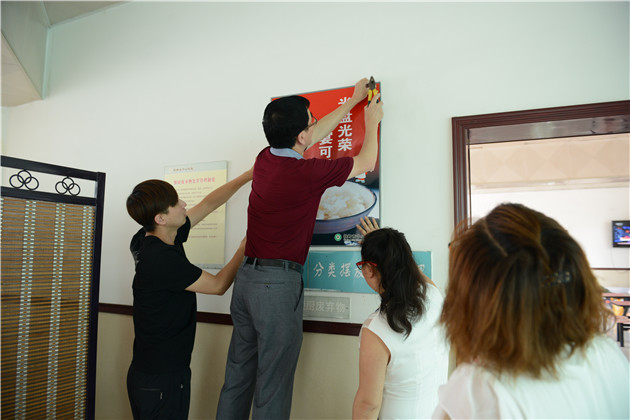 活动中,团委和环境科组织人员在食堂悬挂节约粮食展板并在全院范围粘贴节约用水、用电、用纸宣传标识。一块块展板和一张张小小的宣传标识不仅展现了医院职工不忘初心,爱院如家的价值理念,同时也向社会彰显“节能低碳,我们正在行动”。
