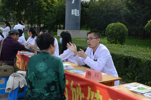 义诊活动开幕仪式在驻跸园广场举行,铁岭市卫计委及我院相关领导出席。启动仪式结束后,各医疗机构专家进行了现场义诊,我院来自内分泌科、神经内科、循环内科、呼吸内科、骨外科、普通外科的6名医生、4名护士及2名药剂师组成的医疗队也在前期的精心准备和周密部署下开始了紧张有序的义诊活动。医务人员耐心细致为广大市民答疑解惑,普及医学常识和健康知识,倡导健康生活方式,引导群众科学就医。活动得到广大市民的热烈响应,现场气氛热烈,总计接待义诊咨询百余人次,发放健康教育手册及宣传单300余份。