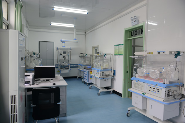 新生儿科病房是以三级甲等医院标准设置的高标准封闭式病区,布局合理,设置新生儿重症监护室(NICU)、普通病区、感染病区三个病区,配有规范的治疗室、配奶室、沐浴室。病房配备中心负压吸引装置、吸氧装置、有创呼吸机、无创呼吸机、空氧混合仪、新生儿专用血气分析仪、新生儿监护仪、经皮黄疸监测仪、暖箱、辐射式抢救台、蓝光治疗仪、微量注射泵、血糖仪及新生儿专用的复苏气囊和喉镜等先进设备。