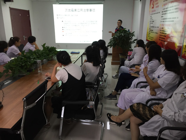 从2017年4月26日起,药学部每隔一周便组织青年药师们进行业务学习,邀请专业人员进行授课,实行签到考试制度,最大限度的保证每一位青年药师得到收获。截止到2017年10月18日已累计培训14次,内容涉及药品品管圈、糖尿病的诊断与治疗、高血压的诊断与治疗进展、抗菌药物的评价等。很多药师表示受益匪浅,许多工作中遇到的问题通过专业老师的讲解便迎刃而解,填补了从学校毕业后专业知识无处补充与巩固的空白。营造了良好的学习氛围,积极、向上、求知是药学部的新面貌。