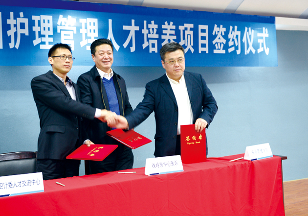 12月19日下午,我院在学术报告厅会议室举行了“中国护理管理人才培养项目”签约启动仪式。国家卫计委人才交流服务中心项目处处长李方、山东威高管理学院院长王充、威高集团华北销售公司总经理李晓岩及我院党委书记、院长贺佳辉、党委副书记党占涛、副院长杨淑贤、护理部主任韩阳及120余名护理人员参加了签约启动仪式。