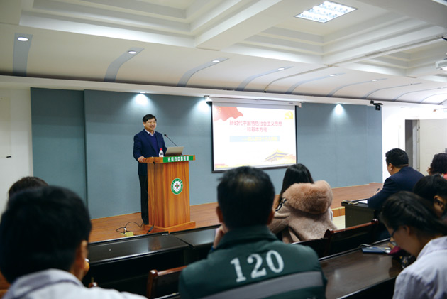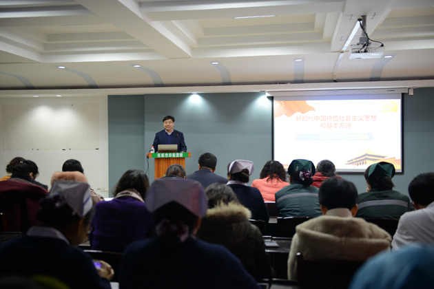 党占涛副书记深入透彻地阐释了习近平新时代中国特色社会主义思想产生的时代背景,并就习近平新时代中国特色社会主义思想及其主要精髓、新时代坚持和发展中国特色社会主义的基本方略进行了详细解读。他强调,把习近平新时代中国特色社会主义思想确立为党必须长期坚持的指导思想,是党的十九大最具核心意义的理论成果,也是大会最大的历史贡献,实现了党的指导思想的又一次伟大飞跃。习近平新时代中国特色社会主义思想具有强大的真理力量,对于我们决胜全面建成小康社会,夺取新时代中国特色社会主义伟大胜利,实现中华民族伟大复兴的中国梦,具有重大现实意义和深远历史意义。