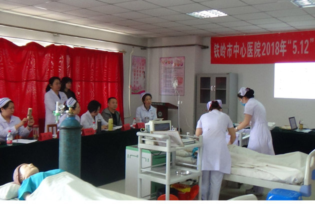 为了提高全院护士的急救能力和护理技术操作水平,4月23、24日护理部在示教室举行了护理技术联合操作竞赛,本次联合操作包括:双人心肺复苏、心电血压血氧饱和度监测、静脉留置针技术、轴线翻身。由护理部王宏茹副主任、医务处薄巍处长、纪检监察部乔薇部长、预防保健处吴文玉处长、感染管理处胡铁菊处长、大科护士长朴欣淑、代兵、高敏、贾波担任评委。对于本次活动,院领导给予了高度重视。