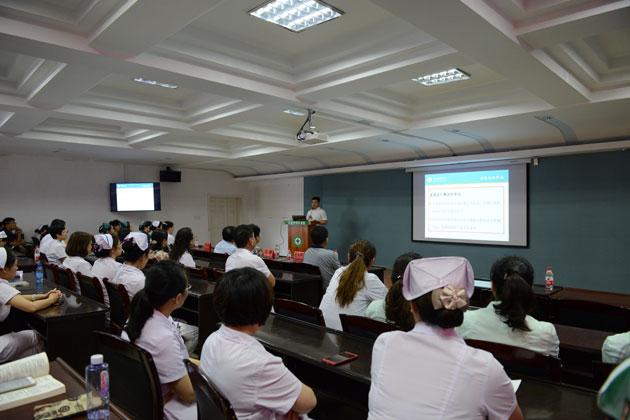最后,“胸痛中心”建设交流环节,邀请辽阳市中心医院心内科主任刘日辉教授为参会人员进行了专题培训,详细介绍了建设胸痛中心的重要意义、认证流程、建设步骤、审核方法,通过培训使大家对胸痛中心的建设工作发挥巨大的推动作用。