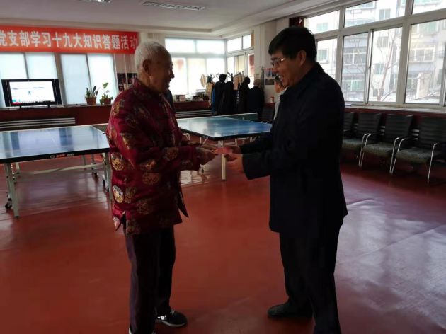 1月28日上午,党委书记、院长贺佳辉,党委副书记党占涛带领班子成员,分别走访慰问了我院离休老干部,为他们送去新春的祝福。每到一处,院领导亲切地和老干部们交谈,详细询问他们的生活起居情况和健康状况,感谢他们为医院发展做出的贡献,感谢他们多年来对医院的关心和支持,祝愿他们新春吉祥,健康长寿,度过一个欢乐祥和的新春佳节。我院现有离休老干部7人,年龄最大的92周岁,最小的87周岁。大家对院领导的慰问表示感谢,对医院目前的改革发展和建设给予充分的肯定,坚信医院在领导班子的正确领导下,经过全院职工的共同努力,一定会越来越好。