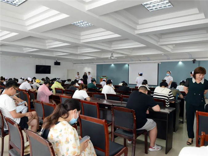 7月26日,入围选手在护理部示教室进行了外周静脉留置针输液技能操作比赛。护理部主任韩阳就技能操作相关注意事项做以强调说明,选手们以抽签方式决定比赛顺序,工会主席石春娟和纪检监察科科长田颖现场随机抽取了评委老师。
