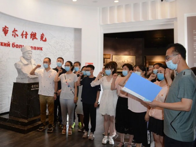 来到任辅臣红色文化教育基地,党员们先跟着讲解员的脚步,参观每一个展厅。通过一件件珍贵的物品,一幅幅珍贵的照片,大家详细了解了任辅臣革命烈士的光辉事迹。最后,所有党员重温了入党誓词。