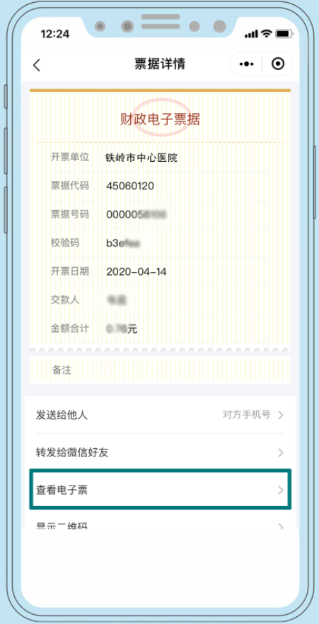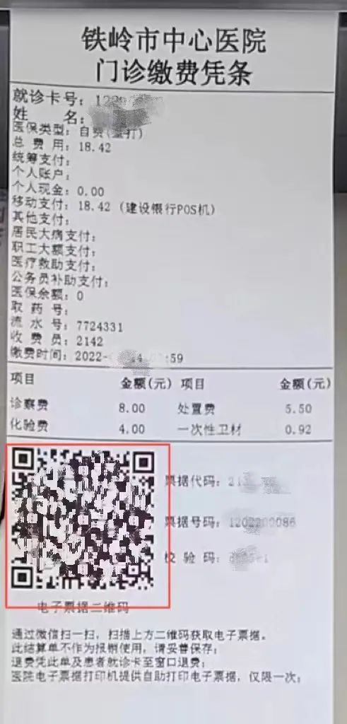 您缴费后微信扫描缴费凭条上二维码获取电子票据。(票据二维码涉及个人隐私,请务必妥善保存,不要丢失!)