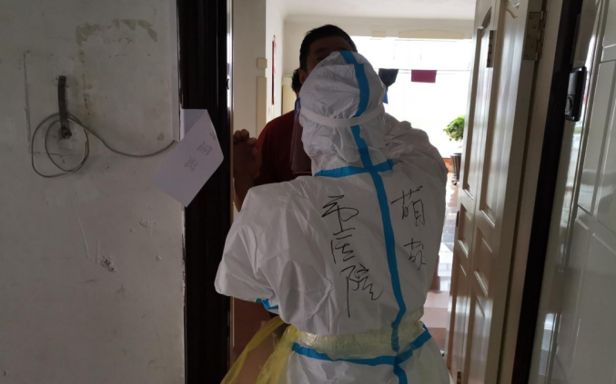 从8月25日晚间开始,孙雪每天都要爬2栋楼8个单元将近60层的楼梯。由于来的匆忙,鞋子不跟脚,孙雪的大脚趾很快就被磨破了皮,大家问她疼么?咱们慢点走吧,她却说,我这点伤口不要紧,采集核酸最重要。休息的时候,大家问孙雪,想孩子么?她说,不想是假的,我女儿现在10岁了,除了平时的夜班,我很少这么久离开过她,但是我们的大家庭有难,我怎能只顾自己的小家呢?她知道自己肩上所承担的责任,总是正能量满满的鼓励自己和同事。