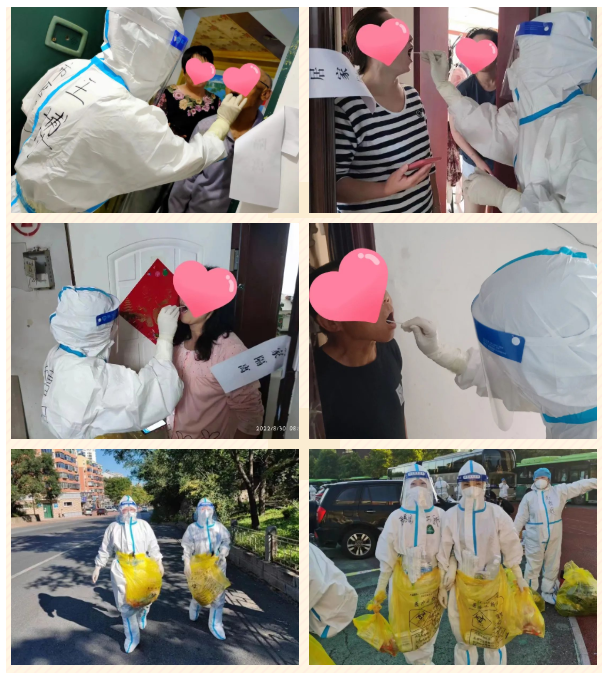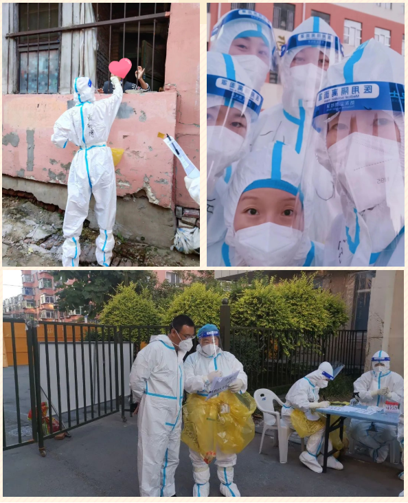 由于核酸采集时间紧、任务重、风险大,临时党支部的党员们带领大家冲锋在前,穿着密不透风的防护服,奔波在楼与楼之间,每人每天都要走2至3栋楼,要爬70余层的楼梯。队员里,有腰伤、膝盖伤年岁大的老大姐,有家中宝宝哭着要找的年轻妈妈,有家里只剩下年迈的父母和学龄孩子的家庭支柱,还有的同志不得不放弃难得的假期。最难的是8月25日晚,突击队员空腹上阵,凌晨1点左右才结束了所有上门入户采样工作。队员们在漆黑的路面上,用最快的速度深一脚浅一脚地走着,由于来的匆忙,大家都没来得及吃晚饭,结束采样工作后,都已是浑身湿透,饥肠辘辘,没有地方睡觉,只能在车里蜷着腿打个盹儿,或是在拼凑的课桌上对付一宿;没有晚饭,几个人吃一碗泡面充饥。面对狡猾的新冠病毒,大家没有任何抱怨,没有人掉队,都努力着奉献自己的力量。