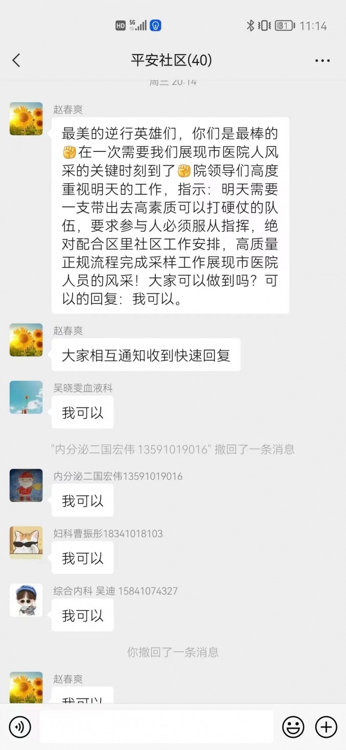 连日来赵春爽几乎没有合过眼,结束白天紧张的工作,还要在夜里同柴河街道及社区负责人碰面,统筹第二天的工作。白天采集工作结束后,她也总是最后一个确保所有人员操作无误后才放心离开。赵春爽的孩子今年刚刚考入大学,但她因为在封控区内工作,爱人也在临床一线,没办法第一时间送孩子踏入陌生的校园,每每想到孩子在视频里安慰她说妈妈是他的骄傲时,她既欣慰又心酸。组织委员房昕、宣传委员肖琳处处起到先锋模范带头作用,哪个岗位需要就到哪个岗位,随时安排加班随时上,毫无怨言。我们的同志都是战“疫”多面手,除了采集核酸,还发挥着自己职业优势,指导居民慢病用药、伤口换药包扎等。