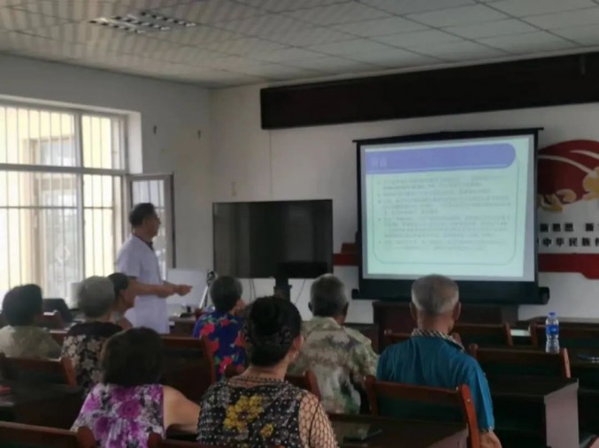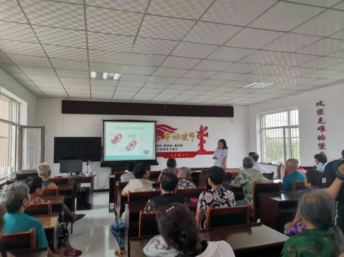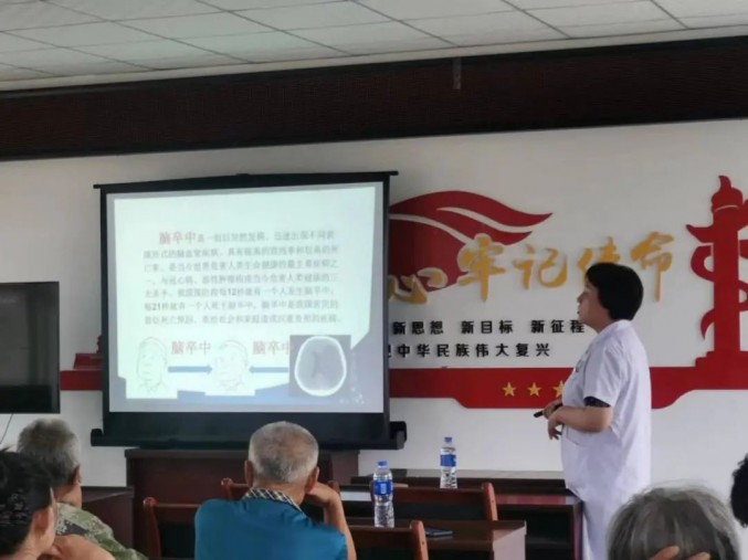 神经内科主任医师王丽霞、神经外科主任医师赵德强为村民讲授了“脑卒中疾病预防”、“脑梗死的取栓治疗”健康知识,使村民了解到一旦出现脑卒中可疑症状,应尽快就医,取得最佳的治疗时机和治疗效果。