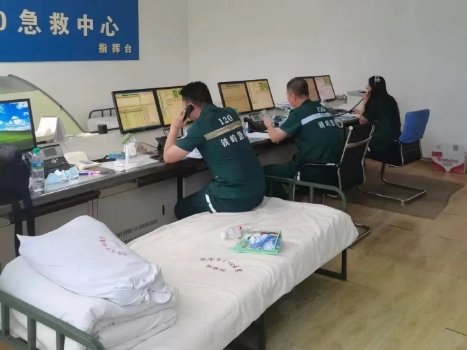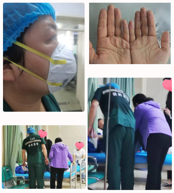 为了积极应对疫情下的特殊需求,120急救中心调度,司机,医生,护士,预检分诊人员以院为家,基本全员在岗坚守,18辆急救车日夜不停歇接诊转运急救患者。医护人员出诊任务接踵而至,很多人一天忙下来顾不上吃一顿饭,每天最多只睡几个小时,饿了匆匆扒一口已经凉透的饭菜又出发,累了也咬着牙坚持再坚持......大家穿着密不透风的防护服,与时间赛跑,全负荷坚持急诊患者救治及危重症抢救工作,用血肉之躯在疫情和人民群众之间筑起钢铁长城。