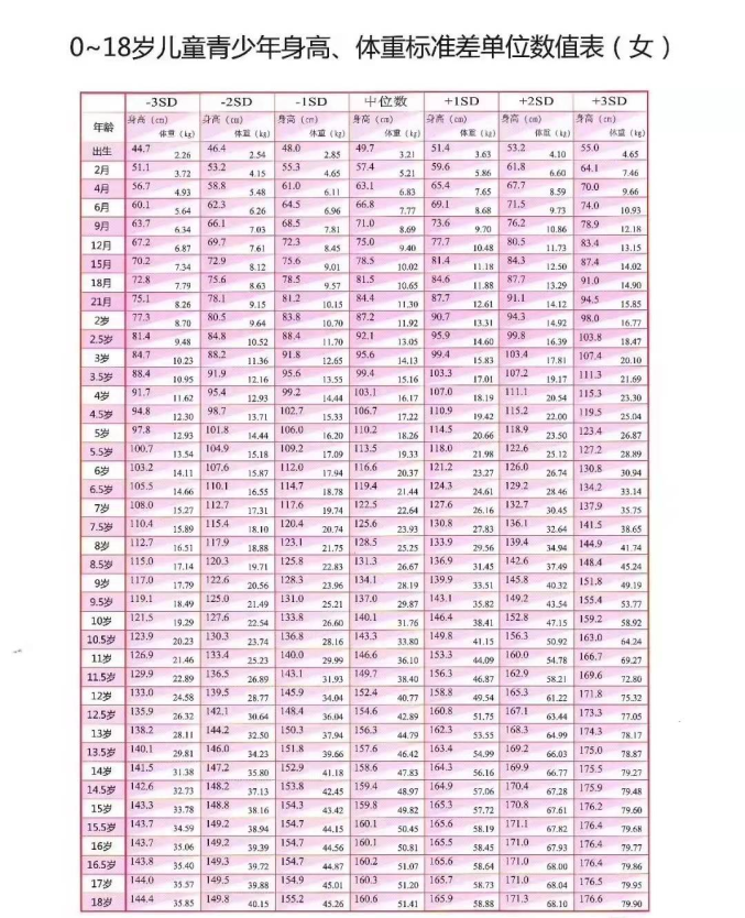 身高没有绝对的标准,但是有一个相对的范围。目前临床上一般用标准差法或百分位法来判断身材矮小,即在相似生活环境下,儿童身高低于同年龄、同性别、同地区、同种族正常儿童身高的2个标准差(-2SD)或3个百分位(-1.88SD),就可诊断为矮身材。