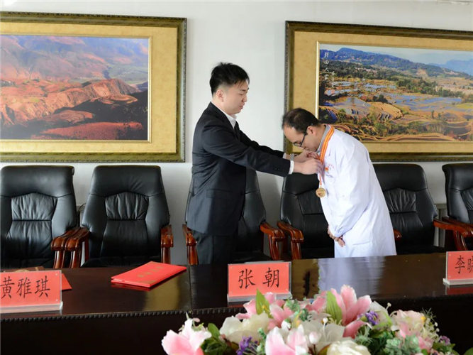 2月24日上午,团市委副书记张朝一行三人莅临我院,对共青团工作进行调研,并为我院“铁岭青年五四奖章”获得者医学检验科刘广旭颁发了奖章和荣誉证书。党委委员、工会主席石春娟,团委负责人徐爽参与调研。