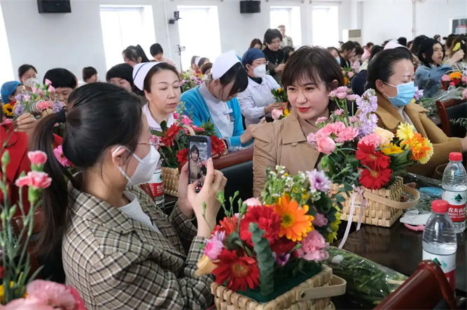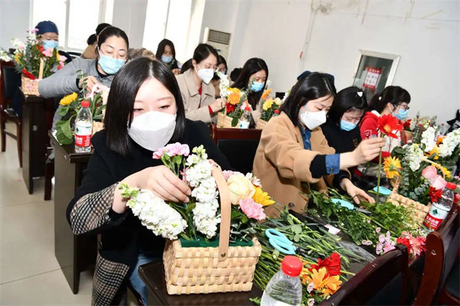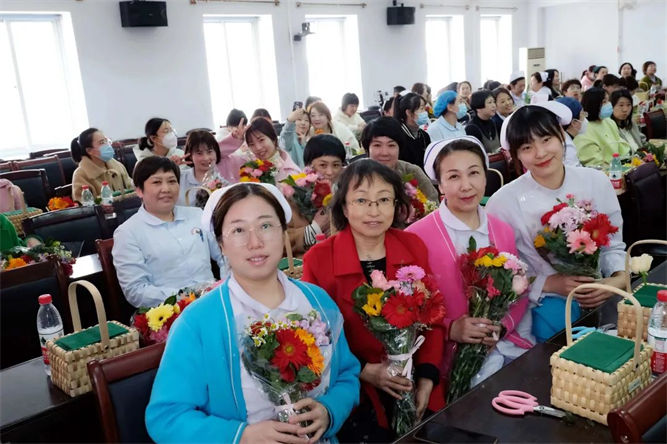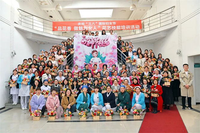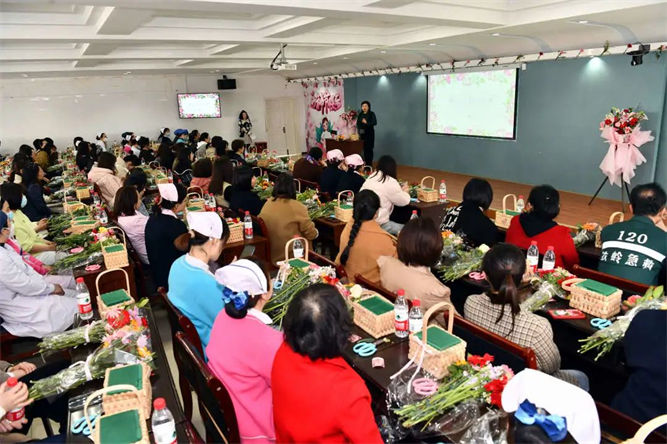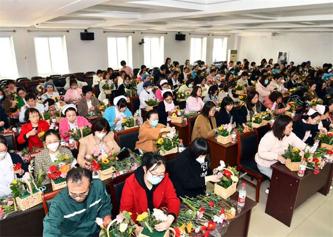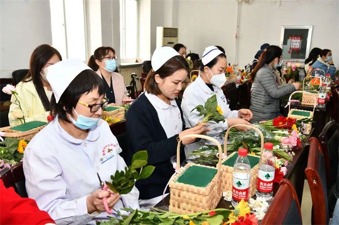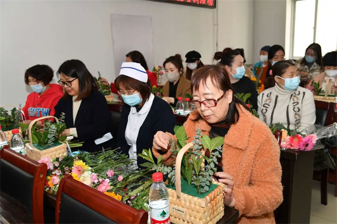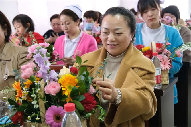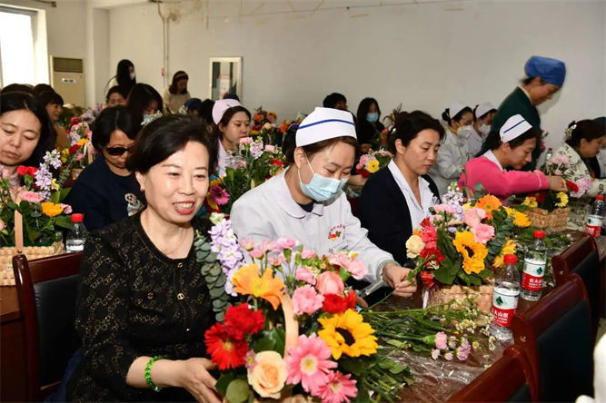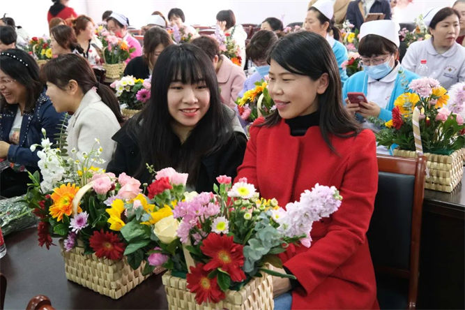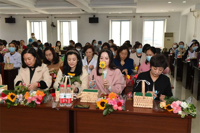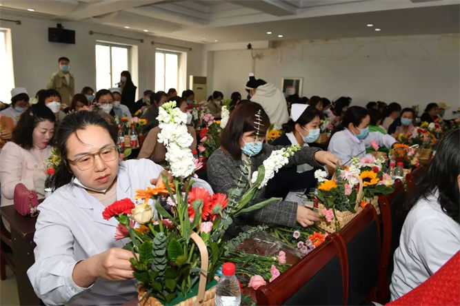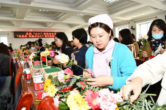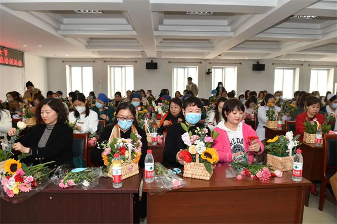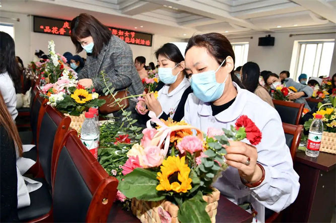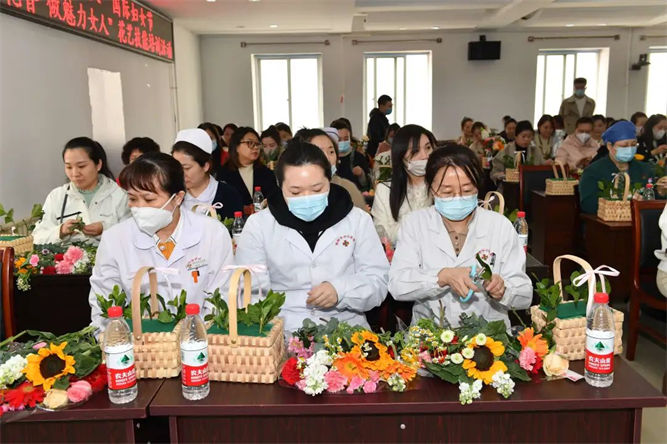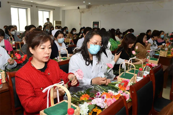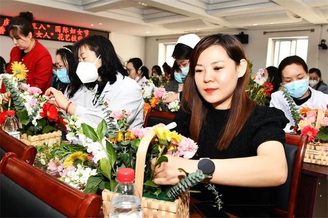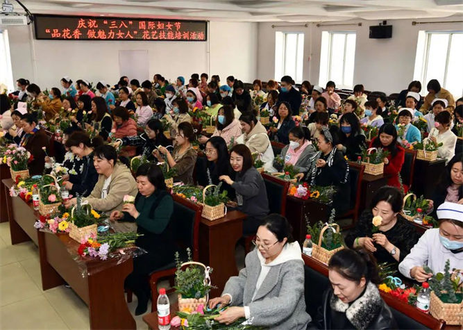 阳春三月,万象更新。在第113个“三八”国际妇女节到来之际,院工会利用3月6日和7日两个下午时间,举办了“品花香 做魅力女人”花艺技能培训插花活动。市总工会教科文卫体工会主席宋朝霞、女工部部长王辉、工会干事崔雪,医院部分领导、工会干部、245名女职工参加了此次活动。