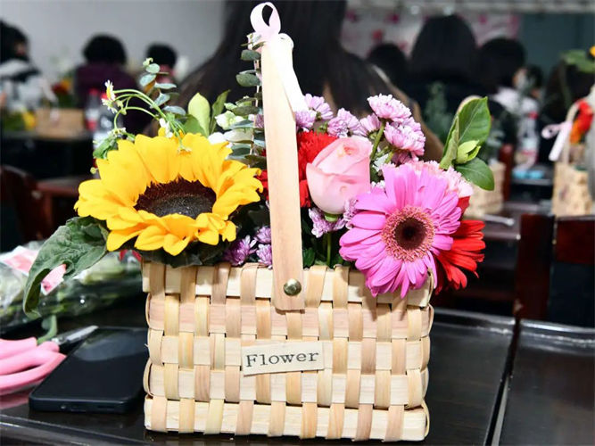讲解结束后,大家纷纷行动起来,从取材、剪叶、构思开始,认真裁剪、精心设计,逐一完成了各自插花作品。一个个缤纷别致的花篮在一双双巧手中诞生,现场顿时春意盎然。大家看着自己亲手创作的插花作品,成就感和幸福感爆棚,纷纷拍照留下美丽瞬间。