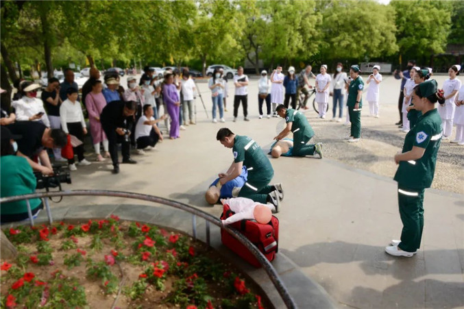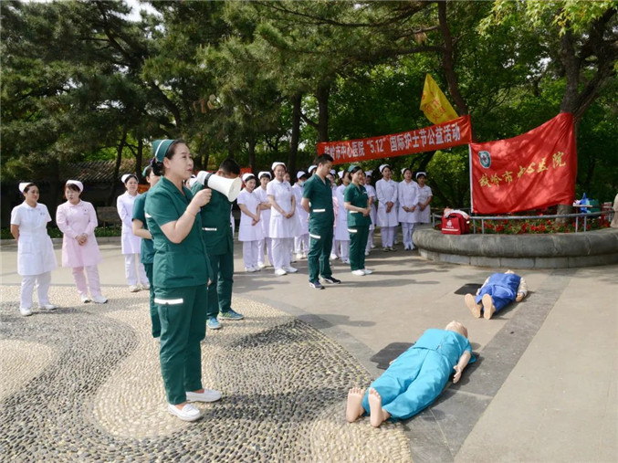为进一步普及急诊急救知识,提高大众自救互救技能,5月11日下午,在第112个“5.12”国际护士节到来之际,意大利贵宾会会员中心护理部护士长王洋洋、120急救中心护士长刁旭带队,在龙首山风景区八景广场开展了急诊急救技术宣传演练活动,把临床急诊急救知识和技能下沉到人民群众当中。