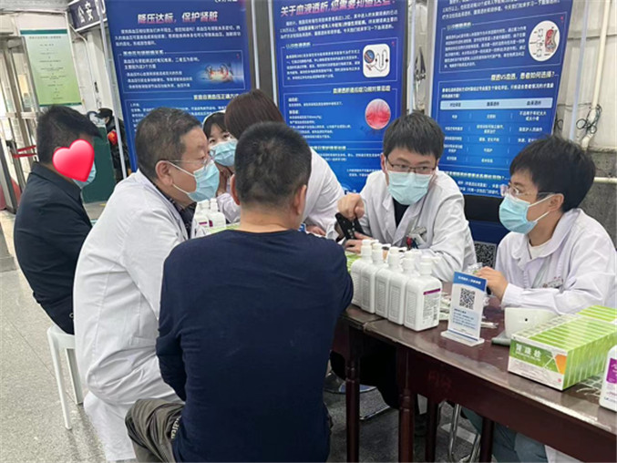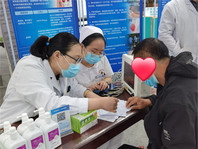 在活动现场,医生对咨询群众耐心细致地问诊,查体,详细解答患者的各种疑问,指导合理使用药物,给予饮食、作息、生活习惯等方面合理化建议,护理人员免费为患者测量血压、血糖,发放肾脏病知识宣传手册,并对肾脏病患者护理方面的问题进行详细解答。