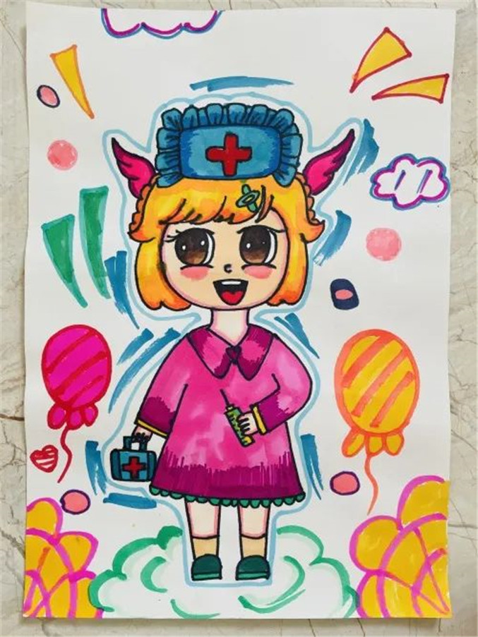 “我的妈妈是护士,会在医院给生病的人扎针、吃药。妈妈和童话里的天使一样,她们都会帮助别人,而且都很漂亮。我希望妈妈真的能长出天使的翅膀,这样她可以飞上天空,帮助更多生病的人。