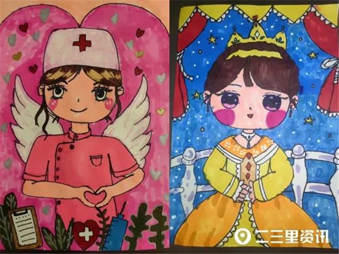 小儿子小龙今年7岁,在他眼里,妈妈不只是妈妈,而是天使,是公主。小龙指着两幅画说:“妈妈肯定是天使,因为护士都是‘白衣天使’。疫情的时候我为了安全呆在家,可妈妈却要去最严重最危险的地方。她真的很厉害,很伟大!我的妈妈也是公主,有时她下班回家太累,还要照顾我们,我都会给她拿杯水,让她多歇歇。我要和爸爸、哥哥一起保护她!”