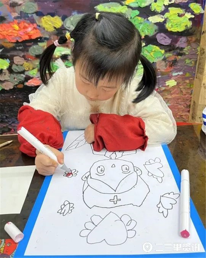 护理部护士长王洋洋的女儿夕夕今年6岁,她画的就是平时看到的穿着护士服的妈妈。夕夕说自己喜欢画画,所以要送给妈妈送一份全是爱心的礼物。