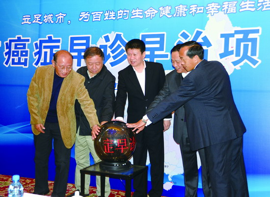 会上副市长魏闻首先发表了重要讲话,他说:“城市癌症早诊早治项目是一项重大的民生工程,全市城区百姓均可以得到免费优质的医疗卫生服务,是对全市人民健康事业一个极大的推进。通过我们的工作让城市居民认识到癌症是可防可治的,早发现早诊断早治疗是最有效的癌症防控途径。同时,建立符合实际的城市癌症早诊早治技术方案和管理模式,这对提高医务人员的业务能力、提高城市居民的健康水平均具有重要的意义。”