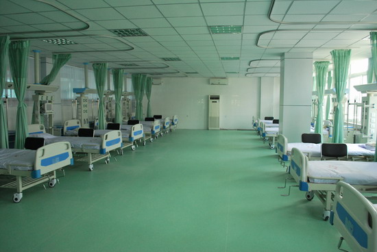 中部为冠心病监护室(CCU),面积150平方米,内设床位12张,而且床单位间都设置隔帘,极大的方便了重症病人的护理和抢救治疗。同时,每张床旁都配备吊塔,吊塔上配备有电源、负压吸引、输氧管道、注射泵、输液泵等,为每一位来科需要监护的病人,提供最优质的服务。最引人注意的是清晰、醒目的监护系统,每张床旁配备一台philips监护仪,并设中央监护台,24小时护士随时浏览每一位病人的监护画面,以便及时发现病情变化。责任护士穿梭于每张床旁,吸氧、输液、安装监护设备,随叫随到。同时CCU病区24小时保证一名医生专职为监护病人提供最迅速、及时的服务。