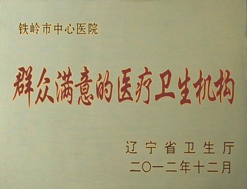 在辽宁省卫生厅举办的2012年“群众满意的医疗卫生机构”评选活动中,经过申报、初评、网络评选和专家评审等程序,我院在全省众多参赛的医院中脱颖而出,被辽宁省卫生厅授予“2012年群众满意的医疗卫生机构”荣誉称号。