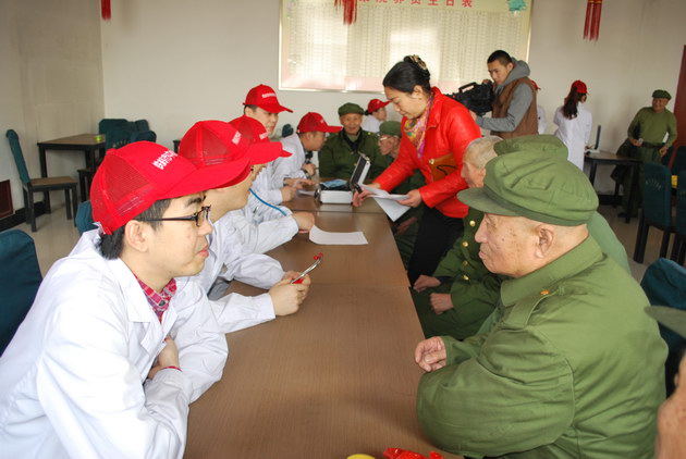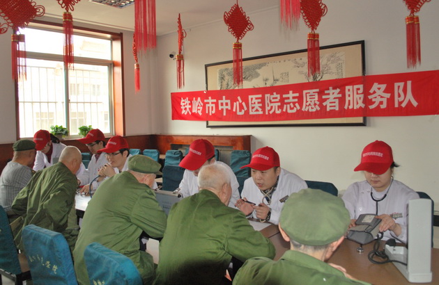 3月13日上午,在院党委书记李树普、工会主席丁力的带领下,由内科、外科、眼科等12人组成的专家医疗队,携带心电图机、血压计、眼科检测仪等设备,来到铁岭市光荣院为老人们进行义诊。医护人员耐心细致地为每位老人进行检查,对老人们提出的健康问题认真地讲解,同时志愿者服务队的其他人员为等候的老人们送水果,与他们亲切的交谈询问生活情况,耐心听取他们回忆往事。看着这些为共和国立下汗马功劳的老人们幸福的笑容,志愿者们深受感动,并从他们身上学到了很多为人处事的道理。