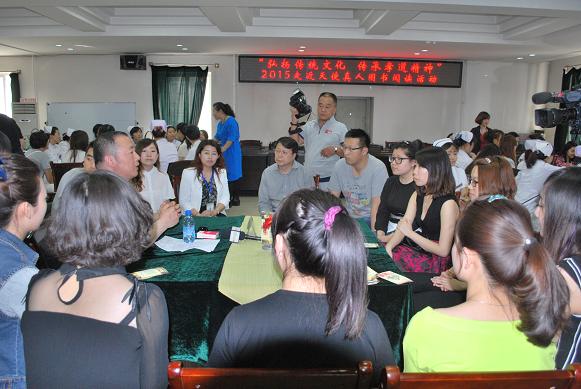 “真人图书阅读”是通过真人面对面交流的形式,分享故事,增进理解,鼓励尊重,提倡包容。此次活动得到了银州区弘扬传统文化中心及织网公益团队的大力支持,他们精心准备了五本上架真人图书:图书1亦渚《孝道笑行》;图书2张玉凡《寻根》;图书3付丽萍《 我是太阳?我是月亮!》;图书4李密林《放下抱怨的安详》;图书5许英《身体健康也是孝》。我院黄升、高敏、金毕女、医大实习生刘弘扬等积极参与活动分享,通过选择阅读的图书,表达了自己的亲身感受。活动最后,银州区弘扬传统文化中心付丽萍主任及织网公益团队的田坤发表了讲话。